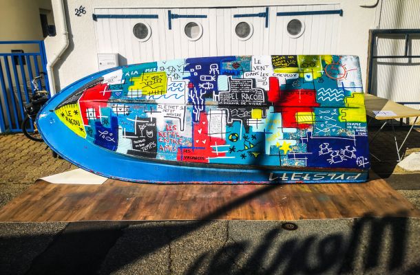 RDV à l’atelier de PWR-FOIL avec nos peintures et marqueurs… Un jour d’octobre sous un soleil d’été dans le port de Canet-en-Roussillon, des visiteurs qui viennent tester les e-foils, de la musique et des sourires… Cela s’annonce plutôt bien !!!